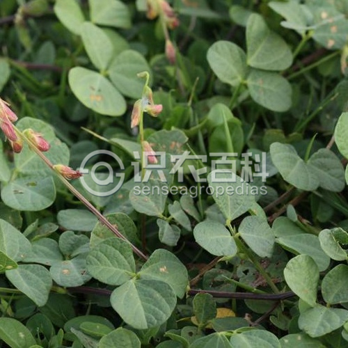 纏繞狀一年生草本。莖很纖細(xì),具細(xì)縱紋,略被短柔毛。葉具羽狀3小葉;托葉小,披針形,常早落;葉柄長(zhǎng)1-4厘米,具微縱紋,無(wú)毛或略被短柔毛;小葉膜質(zhì)或近膜質(zhì),頂生小葉菱狀圓形,長(zhǎng),寬均1.5-3厘米,有時(shí)寬大于長(zhǎng),先端鈍或圓,稀短急尖,兩面無(wú)毛或被極細(xì)的微柔毛,下面密被小腺點(diǎn),基出脈3;小托葉極小;小葉柄極短,側(cè)生小葉與頂生小葉近相等或稍小,斜圓形。總狀花序腋生,長(zhǎng)5-11厘米,花序軸纖細(xì),微被短柔毛;花小,長(zhǎng)約8毫米,排列稀疏,常略下彎;苞片小,披針形,早落;花梗極短;花萼長(zhǎng)約5毫米,微被短柔毛,裂片披針形,略長(zhǎng)于萼菅,其中下面一裂片較長(zhǎng);花冠黃色,伸出萼外,各瓣近等長(zhǎng),旗瓣倒卵狀圓形,基部具瓣柄和2尖耳,翼瓣倒卵狀橢圓形,具瓣柄和耳,龍骨瓣稍彎,先端鈍,具瓣柄。莢果倒披針形至橢圓形,長(zhǎng)1-1.7厘米,寬約5毫米,被短柔毛;種子1-2顆。花、果期5-11月。