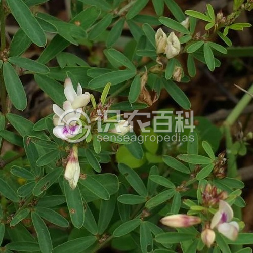 小灌木,高可達1米。全株被伏毛,分枝或上部分枝呈掃帚狀。托葉線形,長約2毫米;葉柄長0.5-1厘米;羽狀復葉具3小葉;小葉倒披針形、線狀長圓形或狹長圓形,長1.5-3.5厘米,寬