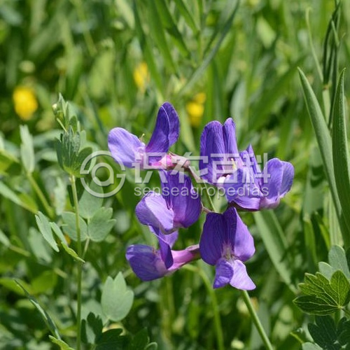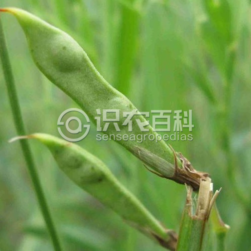 多年生草本,根狀莖不增粗,橫走。莖通常直立,單一,高20-50厘米,具棱及翅,有毛,后漸脫落。偶數羽狀復葉,葉軸末端具不分枝的卷須,下部葉的卷須短,成針刺狀;托葉披針形到線形,長7-23毫米,寬0.2-2毫米;葉具小葉1-2(-3)對;小葉質堅硬,橢圓狀披針形或線狀披針形,長35-80毫米,寬5-8毫米,先端漸尖,具細尖,基部楔形,兩面被短柔毛,上面稀疏,老時毛漸脫落,具5條平行脈,兩面明顯凸出。 總狀花序腋生,具5-8朵花。花梗長3-5毫米;萼鐘狀,被短柔毛,最下一萼齒約與萼筒等長;花紫藍色或紫色,長