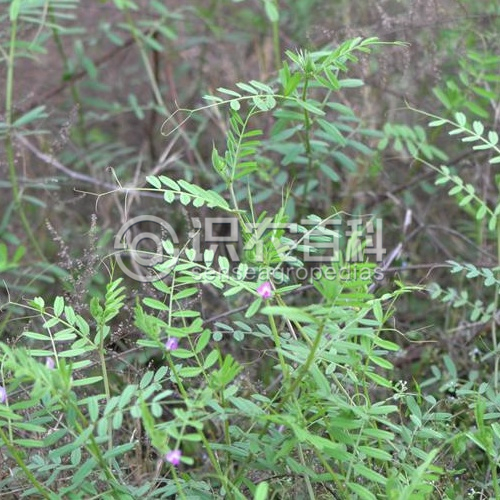 一年生或二年生草本,高20-50(-80)厘米。莖斜升、蔓生或攀援,多分支,被疏柔毛。偶數羽狀復葉長2-6厘米,葉軸頂端卷須發達;托葉半箭頭形或披針形,長約0.15厘米,有2-5齒,被微柔毛;小葉4-6對,線形或線狀長圓形,長1-2.5厘米,寬0.2-0.5厘米,先端平截或微凹,具短尖頭,基部近楔形,葉脈不甚明顯,兩面被淺黃色疏柔毛。花1-2