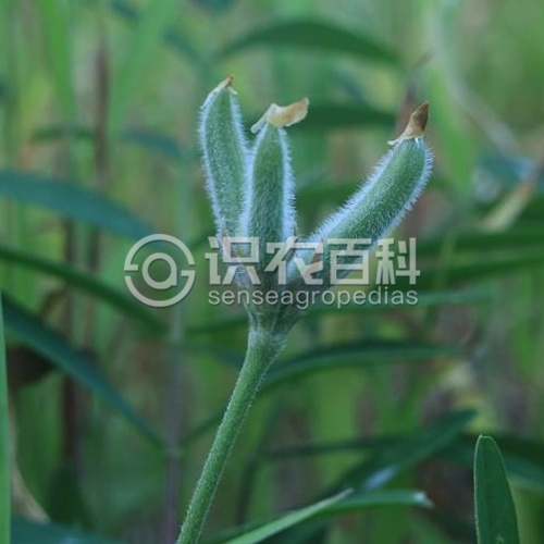 (1.5) 5-8 (-10) 毫米,基部圓,先端具細尖,急尖、鈍、微缺或下凹成弧形。傘形花序有2-6朵花;總花梗具溝,被長柔毛,花期較葉稍長,花后約與葉等長或短于葉長;苞片三角狀線形,長2-4毫米,花梗長1-3.5毫米;花萼鐘狀,長7-8毫米,被貼伏長柔毛,上2萼齒最大,與萼筒等長,下3萼齒較小,最下一片最小;花冠紫堇色,旗瓣長13毫米,寬8毫米,倒卵形,全緣,先端微缺,基部漸狹成瓣柄,翼瓣長10毫米,寬3毫米,斜長倒卵形,具短耳,瓣柄長3毫米,龍骨瓣長6毫米,寬2毫米,倒卵形,瓣柄長2.5毫米;子房橢圓狀,密被貼服長柔毛,花柱無毛,內卷,頂端膨大成圓形柱頭。莢果圓筒狀,長17-22毫米,直徑3-4毫米,被長柔毛;種子三角狀腎形,直徑約1.8毫米,具凹點?;ㄆ?月。果期5-6月。