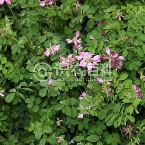 多分枝,匍匐,高10-30厘米,被白色疏柔毛。奇數(shù)羽狀復(fù)葉,具7-13片小葉,長(zhǎng)5-15厘米;葉柄較葉軸短;托葉離生,卵形,長(zhǎng)3-6毫米,先端尖,基部互相多少合生,具緣毛;小葉倒卵形或橢圓形,長(zhǎng)10-15毫米,寬4-10毫米,先端鈍圓或微凹,基部寬楔形,上面近無(wú)毛,下面散生白色柔毛,具短柄。總狀花序生5-10花,呈傘形;總花梗腋生,較葉長(zhǎng);苞片三角狀卵形,長(zhǎng)約0.5毫米;花梗短;花萼鐘狀,長(zhǎng)約4毫米,被白色柔毛,萼齒披針形,長(zhǎng)約為萼筒的1/2;花冠紫紅色或橙黃色,旗瓣倒卵形,長(zhǎng)10-11毫米,先端微凹,基部漸狹成瓣柄,翼瓣較旗瓣短,長(zhǎng)約8毫米,瓣片長(zhǎng)圓形,基部具短耳,瓣柄長(zhǎng)約為瓣片的1/2,龍骨瓣與旗瓣近等長(zhǎng),瓣片半圓形,瓣柄長(zhǎng)約等于瓣片的1/3;子房無(wú)毛或疏被白色短柔毛,具短柄。莢果線狀長(zhǎng)圓形,稍彎曲,長(zhǎng)12-20毫米,寬約4毫米,具短喙,黑色,具隆起的網(wǎng)紋;種子腎形,栗褐色,長(zhǎng)約3毫米。花期2-6月,果期3-7月。