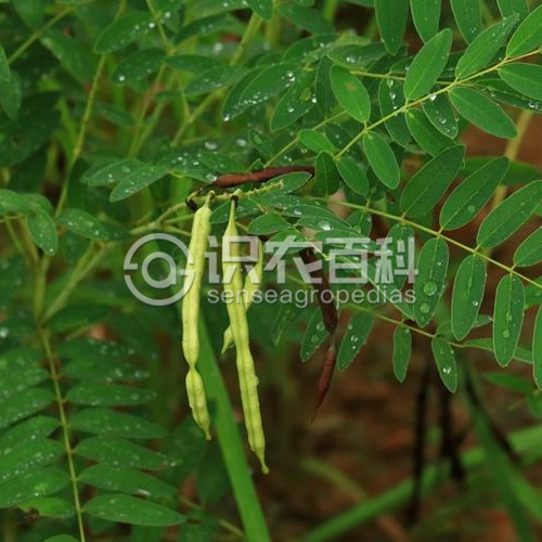 草本或亞灌木,稀呈灌木狀,通常高1米左右,稀達(dá)2米。莖具紋棱,幼時(shí)疏被柔毛,后無毛。羽狀復(fù)葉長(zhǎng)達(dá)25厘米;托葉披針狀線形,漸尖,長(zhǎng)約6-8毫米;小葉6-12對(duì),互生或近對(duì)生,紙質(zhì),形狀多變,橢圓形、卵形、披針形至披針狀線形,長(zhǎng)3-4(-6)厘米,寬(0.5-)1.2-2厘米,先端鈍或急尖,基部寬楔開或淺心形,上面無毛,下面疏被灰白色短柔毛或近無毛。中脈下面隆起。總狀花序頂生,長(zhǎng)15-25厘米;花多數(shù),疏或稍密;花梗纖細(xì),長(zhǎng)約7毫米;苞片線形,長(zhǎng)約2.5毫米;花萼鐘狀,明顯歪斜,具不明顯波狀齒,完全發(fā)育后近截平,長(zhǎng)約5毫米,寬約6毫米,疏被短柔毛;花冠比花萼長(zhǎng)1倍,白色或淡黃白色,旗瓣倒卵狀匙形,長(zhǎng)14-15毫米,寬6-7毫米,先端圓形或微缺,基部漸狹成柄,柄寬3毫米,翼瓣單側(cè)生,強(qiáng)烈皺褶幾達(dá)瓣片的頂部,柄與瓣片近等長(zhǎng),長(zhǎng)約13毫米,龍骨瓣與翼瓣相似,稍寬,寬約4毫米,雄蕊10,分離或近基部稍連合;子房近無柄,被淡黃白色柔毛,花柱稍彎曲,胚珠多數(shù)。莢果長(zhǎng)5-10厘米,種子間稍縊縮,呈不明顯串珠狀,稍四棱形,疏被短柔毛或近無毛,成熟后開裂成4瓣,有種子1-5粒;種子長(zhǎng)卵形,稍壓扁,深紅褐色或紫褐色。花期6-8月,果期7-10。