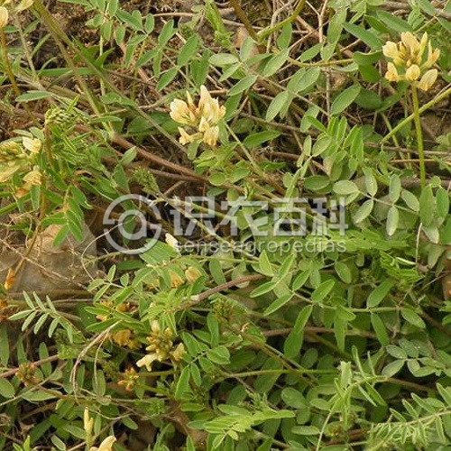 多年生草本,高20-40厘米。莖叢生,多分枝,有條棱,疏被白色毛。羽狀復葉有9-17片小葉,長4-5厘米,具短葉柄;托葉基部合生,膜質,三角形漸尖,長3-7毫米,無毛;小葉狹橢圓形或狹披針形,長5-10毫米,寬1.5-4毫米,先端鈍或稍尖,基部寬楔形,上面無毛或疏被毛,下面疏被白色粗毛,無柄或近無柄??偁罨ㄐ蛏?-15花,排列緊密;總花梗與葉等長或稍長,疏被白色毛;苞片膜質,卵形,被白色毛,邊綠具黑色或白色毛;花萼鐘狀管形,長7-8毫米,疏被白色或黑色毛,萼齒鉆形,長為萼筒的1/3;花冠淡紅色或藍紫色,旗瓣長12-15毫米,寬橢圓形,先端微凹,基部稍狹,瓣柄不明顯,翼瓣較旗瓣短,瓣片先端微凹,較瓣柄稍長,龍骨瓣較翼瓣短,瓣片半橢圓形,較瓣柄稍長;子房被疏毛,無柄或幾無柄,含多數胚珠。莢果細圓柱形,長約3厘米,略彎曲,假2室,疏被粗毛或近無毛。種子腎形,橄欖色。花期5-6月,果期6-9月。