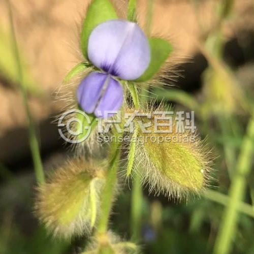 體高30-100厘米,基部常木質,單株或莖上分枝,被緊貼粗糙的長柔毛。托葉線形,長2-3毫米,宿存或早落;單葉,葉片形狀常變異較大,通常為線形或線狀披針形,兩端漸尖,長3-8厘米,寬0.5-1厘米,上面近無毛,下面密被絲質短柔毛;葉柄近無。總狀花序頂生、腋生或密生枝頂形似頭狀,亦有葉腋生出單花,花1—多數;苞片線狀披針形,長4-6毫米,小苞片與苞片同形,成對生萼筒部基部;花梗短,長約2毫米;花萼二唇形,長10-15毫米,密被棕褐色長柔毛,萼齒闊披針形,先端漸尖;花冠藍色或紫藍色,包被萼內,旗瓣長圓形,長7-10毫米,寬4-7毫米,先端鈍或凹,基部具胼胝體二枚,翼瓣長圓形或披針狀長圓形,約與旗瓣等長,龍骨瓣中部以上變狹,形成長喙;子房無柄。莢果短圓柱形,長約10毫米,苞被萼內,下垂緊貼于枝,禿凈無毛;種子10-15顆。花果期5月至翌年2月。