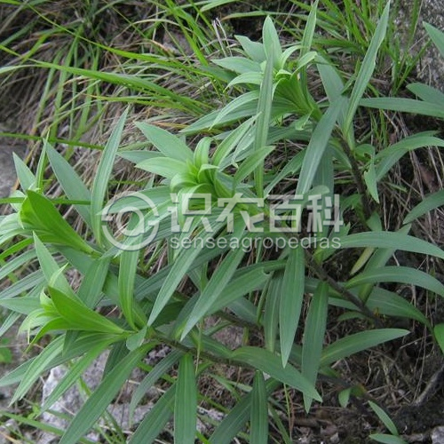 野百合(學名:Crotalaria sessiliflora L.),雙子葉植物綱,薔薇目,豆科,豬屎豆屬直立草本植物。農吉利(中草藥學),紫花野百合(江西),倒掛山芝麻(浙江)、羊屎蛋(山東)