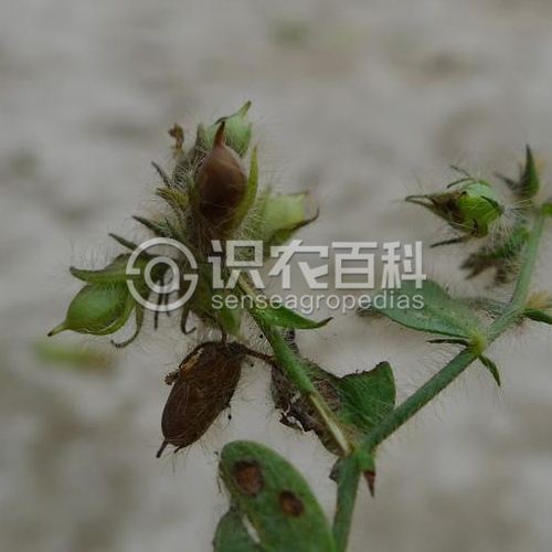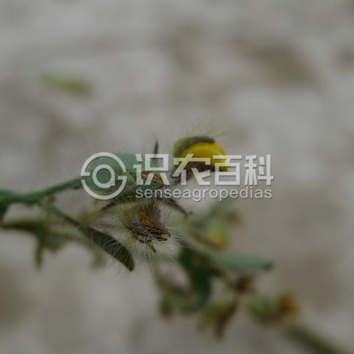 草本,高20-80厘米;莖多分枝,鋪地散生或直立,全部被褐色伸展的絲質毛。托葉線形,長2-4毫米;單葉,葉片圓形或長圓形,膜質或薄紙質,長1-2 (-3) 厘米,寬1-1.5厘米,先端圓或漸尖,基部漸狹或略成心形,有時偏斜,兩面被稀疏伸展的白色絲質毛;葉柄短??偁罨ㄐ蝽斏蛞干讜r緊縮呈頭狀,后漸伸長,有花5-30朵;苞片披針形或針形,長2-3毫米,小苞片針形,生萼筒基部或花梗上部;花梗長3-5毫米;花萼二唇形,長4-6毫米,深裂,幾達基部,萼齒披針形,密被棕褐色絲質柔毛;花冠黃色,旗瓣圓形或倒卵圓形,長4-5毫米,翼瓣長橢圓形,比旗瓣稍短,龍骨瓣圓形,具長喙;子房無柄。莢果短圓柱形,近無毛,長約10毫米;種子10-12顆。花果期8月至翌年2月。