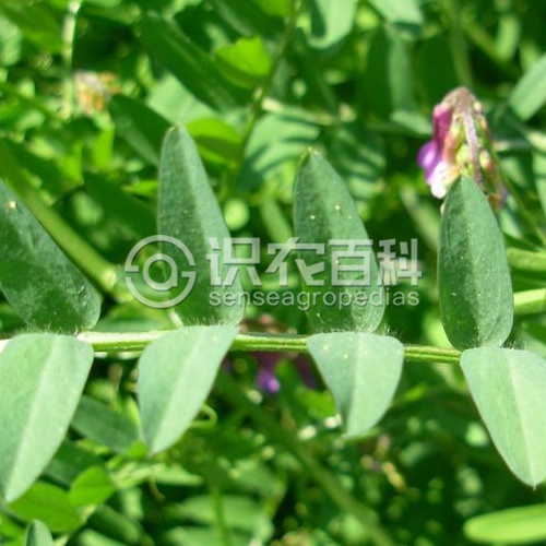 一年生草本,攀援或蔓生,植株被長柔毛,長30-150厘米,莖柔軟,有棱,多分枝。偶數羽狀復葉,葉軸頂端卷須有2-3分支;托葉披針形或二深裂,呈半邊箭頭形;小葉通常5-10對,長圓形、披針形至線形,長1-3厘米,寬0.3-0.7厘米,先端漸尖,具短尖頭,基部楔形,葉脈不甚明顯。總狀花序腋生,與葉近等長或略長于葉;具花10-20朵,一面向著生于總花序軸上部;花萼斜鐘形,長約0.7厘米,萼齒5,近錐形,長約0.4厘米,下面的三枚較長;花冠紫色、淡紫色或紫藍色,旗瓣長圓形,中部縊縮,長約0.5厘米,先端微凹;翼瓣短于旗瓣;龍骨瓣短于冀瓣。莢果長圓狀菱形,長2.5-4厘米,寬0.7-1.2厘米,側扁,先端具喙。種子2-8,球形,直徑約0.3厘米,表皮黃褐色至黑褐色,種臍長相等于種子圓周1/7。花果期4-10月。