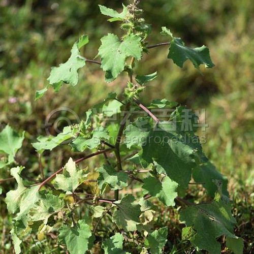 根紡錘狀,分枝或不分枝。莖直立不枝或少有分枝,下部圓柱形,徑4-10毫米,上部有縱溝,被灰白色糙伏毛。葉三角狀卵形或心形,長4-9厘米,寬5-10厘米,近全緣,或有3-5不明顯淺裂,頂端尖或鈍,基部稍心形或截形,與葉柄連接處成相等的楔形,邊緣有不規則的粗鋸齒,有三基出脈,側脈弧形,直達葉緣,脈上密被糙伏毛,上面綠色,下面蒼白色,被糙伏毛;葉柄長3-11厘米。雄性的頭狀花序球形,徑4-6毫米,有或無花序梗,總苞片長圓狀披針形,長1-1.5毫米,被短柔毛,花托柱狀,托片倒披針形,長約2毫米,頂端尖,有微毛,有多數的雄花,花冠鐘形,管部上端有5寬裂片;花藥長圓狀線形;雌性的頭狀花序橢圓形,外層總苞片小,披針形,長約3毫米,被短柔毛,內層總苞片結合成囊狀,寬卵形或橢圓形,綠色,淡黃綠色或有時帶紅褐色,在瘦果成熟時變堅硬,連同喙部長12-15毫米,寬4-7毫米,外面有疏生的具鉤狀的刺,刺極細而直,基部微增粗或幾不增粗,長1-1.5毫米,基部被柔毛,常有腺點,或全部無毛;喙堅硬,錐形,上端略呈鐮刀狀,長1.5-2.5毫米,常不等長,少有結合而成1個喙。瘦果2,倒卵形。花期7-8月,果期9-10月。
