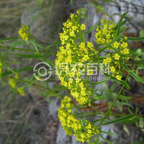 (15-) 30-80 (-100) 厘米;根狀莖較長,橫走;莖直立,被倒生微糙伏毛。基生葉叢生,長3-8厘米,具長柄,葉片邊緣圓齒狀或具糙齒狀缺刻,不分裂或羽狀分裂至全裂,具1-4 (-5) 對側(cè)裂片,裂片卵形至線狀披針形,頂生裂片常較大,卵形至卵狀披針形;莖生葉對生,莖下部葉常2-3 (-6) 對羽狀全裂,頂生裂片較側(cè)裂片稍大或近等大,卵形或?qū)捖研危本€狀披針形,長7 (-9) 厘米,寬5 (-6) 厘米,先端漸尖或長漸尖,中部葉常具1-2對側(cè)裂片,頂生裂片最大,卵形、卵狀披針形或近菱形,具圓齒,疏被短糙毛,葉柄長1厘米,上部葉較窄,近無柄。花黃色,組成頂生傘房狀聚傘花序,被短糙毛或微糙毛;總花梗下苞葉常具1或2對(較少為3-4對)線形裂片,分枝下者不裂,線形,常與花序近等長或稍長;萼齒5,明顯或不明顯,圓波狀、卵形或卵狀三角形至卵狀長圓形,長0.1-0.3毫米;花冠鐘形,冠筒長1.8-2 (-2.4) 毫米,上部寬1.5-2毫米,基部一側(cè)具淺囊腫,裂片5,卵形或卵狀橢圓形,長0.8-1.8毫米,寬1.6毫米;雄蕊4伸出,花絲2長2短,近蜜囊者長3-3.6毫米,余者長1.9-3毫米,花藥長圓形,長1.2毫米;子房倒卵形或長圓形,長0.7-0.8毫米,花柱稍彎曲,長2.3-2.7毫米,柱頭盾狀或截頭狀。瘦果長圓形或倒卵形,頂端平截,不育子室上面疏被微糙毛,能育子室下面及上緣被微糙毛或凡無毛;翅狀果苞干膜質(zhì),倒卵形、倒卵狀長圓形或倒卵狀橢圓形,稀橢圓形,頂端鈍圓,有時極淺3裂,或僅一側(cè)有1淺裂,長5.5-6.2毫米,寬4.5-5.5毫米,網(wǎng)狀脈常具2主脈,較少3主脈。花期7-9月,果期8-10月。