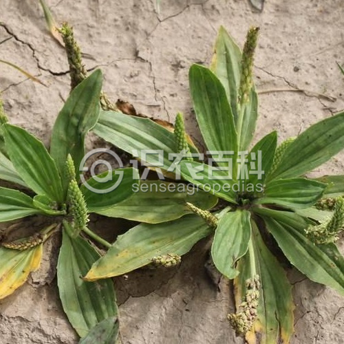 有圓柱狀直根。葉柄長1.5-3cm;葉基生,平鋪地面,橢圓形或橢圓狀披針形,縱脈3-7條;葉柄基部具較寬葉鞘,邊緣有小齒。穗狀花序直立,長4-10cm,上部花較密,下部花較疏;花冠裂片4.蒴果圓錐狀,褐黃色。種子4-5,長圓形,細小,黑棕色,光滑。花期5-9月。果期6-10月。