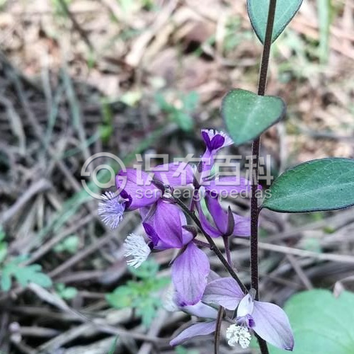 (3-)5-9毫米,先端鈍,具短尖頭,基部闊楔形至圓形,全緣,葉面綠色,背面淡綠色,兩面無毛或被短柔毛,主脈上面凹陷,背面隆起,側脈3-5對,兩面凸起,并被短柔毛;葉柄長約1毫米,被短柔毛??偁罨ㄐ蚺c葉對生,或腋外生,最上1個花序低于莖頂?;ü<殻L約7毫米,被短柔毛,基部具1披針形、早落的苞片;萼片5,宿存,外面3枚披針形,長4毫米,外面被短柔毛,里面2枚花瓣狀,卵形至長圓形,長約6.5毫米,寬約3毫米,先端圓形,具短尖頭,基部具爪;花瓣3,白色至紫色,基部合生,側瓣長圓形,長約6毫米,基部內側被短柔毛,龍骨瓣舟狀,具流蘇狀雞冠狀附屬物;雄蕊8,花絲長6毫米,全部合生成鞘,鞘1/2以下與花瓣貼生,且具緣毛,花藥無柄,頂孔開裂;子房倒卵形,徑約2毫米,具翅,花柱長約5毫米,彎曲,柱頭2,間隔排列。蒴果圓形,徑約6毫米,短于內萼片,頂端凹陷,具喙狀突尖,邊緣具有橫脈的闊翅,無緣毛。種子2粒,卵形,長約3毫米,徑約1.5毫米,黑色,密被白色短柔毛,種阜2裂下延,疏被短柔毛。花期4-5月,果期5-8月。
