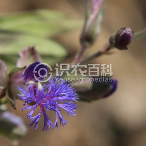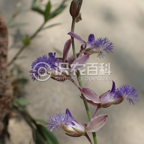 多年生草本,高10-30厘米;根直立或斜生,木質。莖叢生,通常直立,被短柔毛。葉互生,葉片紙質至亞革質,下部葉小卵形,長約6毫米,寬約4毫米,先端鈍,上部者大,披針形或橢圓狀披針形,長1-2厘米,寬3-6毫米,先端鈍,具骨質短尖頭,基部楔形,全緣,略反卷,綠色,兩面被短柔毛,主脈上面凹陷,背面隆起,側脈不明顯,具短柄。總狀花序腋外生或假頂生,通常高出莖頂,被短柔毛,具少數花;花長6-10毫米,具3枚小苞片,鉆狀披針形,長約2毫米,被短柔毛;萼片5,宿存,背面被短柔毛,具緣毛,外面3枚披針形,長約3毫米,里面2枚花瓣狀,近鐮刀形,長約7.5毫米,寬約3毫米,先端具突尖,基部具爪,淡綠色,邊緣色淺;花瓣3,藍紫色,側瓣倒卵形,長5-6毫米,2/5以下與龍骨瓣合生,先端圓形,微凹,基部內側被柔毛,龍骨瓣較側瓣長,背面被柔毛,具流蘇狀雞冠狀附屬物;雄蕊8,花絲長5-6毫米,2/3以下合生成鞘,且具緣毛,花藥卵形,頂孔開裂;子房倒卵形,徑約2毫米,頂端具緣毛,花柱肥厚,頂端彎曲,長約5毫米,柱頭2,間隔排列。蒴果近倒心形,徑約5毫米,頂端微缺,具狹翅及短緣毛。種子長圓形,扁,長約1.5毫米,黑色,密被白色柔毛,具白色種阜。花期4-7月,果期5-8月。