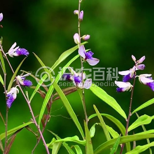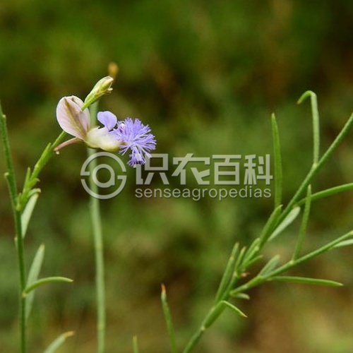 多處生草本,高15-50厘米;主根粗壯,韌皮部肉質,淺黃色,長達10余厘米。莖多數叢生,直立或傾斜,具縱棱槽,被短柔毛。單葉互生,葉片紙質,線形至線狀披針形,長1-3厘米,寬0.5-1(-3)毫米,先端漸尖,基部楔形,全緣,反卷,無毛或極疏被微柔毛,主脈上面凹陷,背面隆起,側脈不明顯,近無柄。總狀花序呈扁側狀生于小枝頂端,細弱,長5-7厘米,通常略俯垂,少花,稀疏;苞片3,披針形,長約1毫米,先端漸尖,早落;萼片5,宿存,無毛,外面3枚線狀披針形,長約2.5毫米,急尖,里面2枚花瓣狀,倒卵形或長圓形,長約5毫米,寬約2.5毫米,先端圓形,具短尖頭,沿中脈綠色,周圍膜質,帶紫堇色,基部具爪;花瓣3,紫色,側瓣斜長圓形,長約4毫米,基部與龍骨瓣合生,基部內側具柔毛,龍骨瓣較側瓣長,具流蘇狀附屬物;雄蕊8,花絲3/4以下合生成鞘,具緣毛,3/4以上兩側各3枚合生,花藥無柄,中間2枚分離,花絲絲狀,具狹翅,花藥長卵形;子房扁圓形,頂端微缺,花柱彎曲,頂端呈喇叭形,柱頭內藏。蒴果圓形,徑約4毫米,頂端微凹,具狹翅,無緣毛;種子卵形,徑約2毫米,黑色,密被白色柔毛,具發達、2裂下延的種阜。花果期5-9月。
