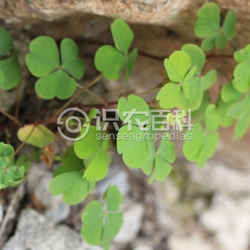 草本,高10-35厘米,全株被柔毛。根莖稍肥厚。莖細(xì)弱,多分枝,直立或匍匐,匍匐莖節(jié)上生根。葉基生或莖上互生;托葉小,長(zhǎng)圓形或卵形,邊緣被密長(zhǎng)柔毛,基部與葉柄合生,或同一植株下部托葉明顯而上部托葉不明顯;葉柄長(zhǎng)1-13厘米,基部具關(guān)節(jié);小葉3,無(wú)柄,倒心形,長(zhǎng)4-16毫米,寬4-22毫米,先端凹入,基部寬楔形,兩面被柔毛或表面無(wú)毛,沿脈被毛較密,邊緣具貼伏緣毛。花單生或數(shù)朵集為傘形花序狀,腋生,總花梗淡紅色,與葉近等長(zhǎng);花梗長(zhǎng)4-15毫米,果后延伸;小苞片2,披針形,長(zhǎng)2.5-4毫米,膜質(zhì);萼片5,披針形或長(zhǎng)圓狀披針形,長(zhǎng)3-5毫米,背面和邊緣被柔毛,宿存;花瓣5,黃色,長(zhǎng)圓狀倒卵形,長(zhǎng)6-8毫米,寬4-5毫米;雄蕊10,花絲白色半透明,有時(shí)被疏短柔毛,基部合生,長(zhǎng)、短互間,長(zhǎng)者花藥較大且早熟;子房長(zhǎng)圓形,5室,被短伏毛,花柱5,柱頭頭狀。蒴果長(zhǎng)圓柱形,長(zhǎng)1-2.5厘米,5棱。種子長(zhǎng)卵形,長(zhǎng)1-1.5毫米,褐色或紅棕色,具橫向肋狀網(wǎng)紋。花、果期2-9月。