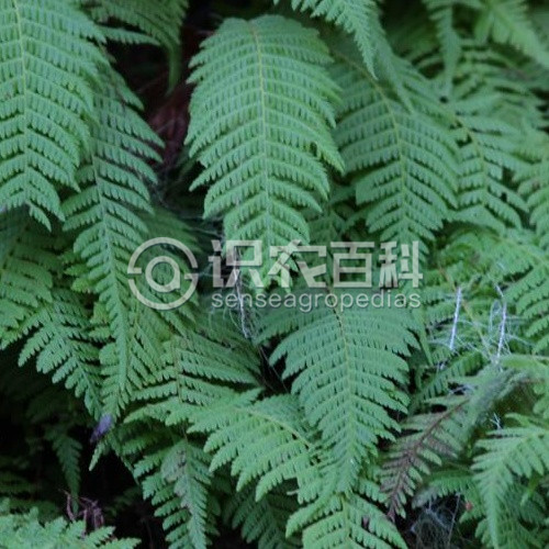 植株高40-60厘米。根狀莖長而橫走,粗約1.5毫米,近光滑。葉近生;葉柄長10-20厘米,粗1-1.5毫米,基部褐棕色,多少被紅棕色的闊卵形的鱗片,向上為亮禾稈色,光滑;葉片長30-40厘米,中部寬7-10厘米,倒披針形,先端漸尖并羽裂,向基部逐漸變狹,二回羽狀深裂;羽片約25-33對,下部5-7 對近對生,相距2-3厘米,向下逐漸縮小成小耳形,最下的呈瘤狀,中部羽片互生,無柄,近平展,相距1-1.5厘米,長4-5厘米,寬7-12厘米,披針形,漸尖頭,基部稍變寬,對稱,截形,羽裂幾達(dá)羽軸;裂片約18對,略斜展,接近,長3-5毫米,寬約2毫米,長圓形,圓鈍頭,全緣或邊緣具淺粗鋸齒。葉脈明顯,側(cè)脈單一,斜上,每裂片4-5對,葉為草質(zhì),干后草綠色,下面沿羽軸、主脈和葉緣被灰白色、開展的單細(xì)胞針狀毛,并偶混生少數(shù)具2-3個(gè)細(xì)胞的針狀毛(沿羽軸較密),脈間密被微細(xì)的腺毛及少數(shù)橙黃色的圓球形腺體;上面除葉軸和葉脈被短針毛外,其余近光滑。孢子囊群圓形,中等大,每裂片3-4對,背生于側(cè)脈的中部以上,遠(yuǎn)離主脈;囊群蓋中等大,圓腎形,棕色,膜質(zhì),背面被少數(shù)灰白色的長針毛。孢子兩面型,圓腎形,周壁具皺褶,網(wǎng)狀紋飾少而不明顯,網(wǎng)眼大小相等,外壁表面具規(guī)則的細(xì)網(wǎng)狀紋飾。