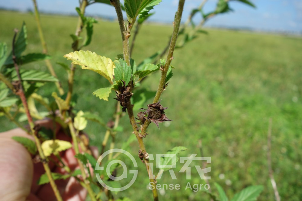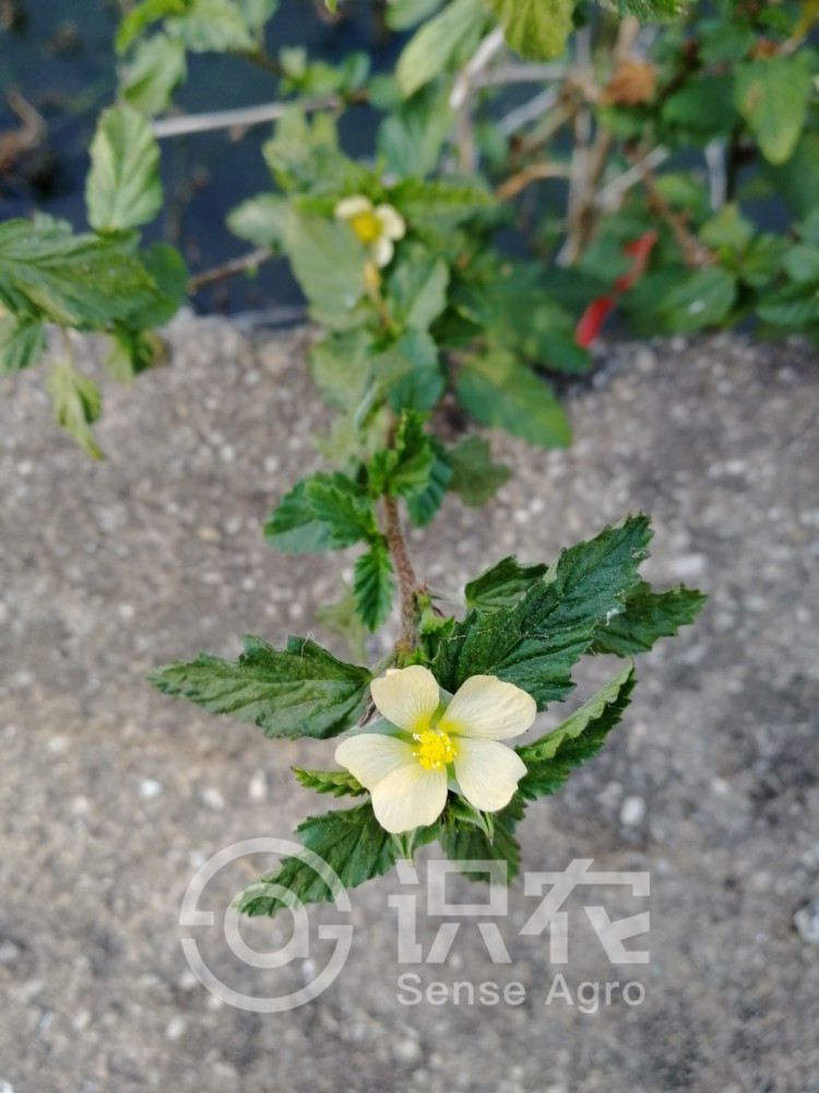 直立,高達(dá)1米,疏被單毛和星狀粗毛。葉卵狀披針形或卵形,長(zhǎng)3-6厘米,寬1-3厘米,先端鈍尖,基部寬楔形至圓形,邊緣具粗鋸齒,上面疏被長(zhǎng)毛,下面疏被長(zhǎng)毛和星狀長(zhǎng)毛;葉柄長(zhǎng)1-3厘米,密被長(zhǎng)毛;托葉披針形,長(zhǎng)約5毫米。花單生于葉腋,花梗長(zhǎng)約5毫米,被長(zhǎng)毛;小苞片線形,長(zhǎng)5毫米,寬1毫米,疏被長(zhǎng)毛;萼淺杯狀,5裂,裂片卵形,漸尖頭,長(zhǎng)約8毫米,基部合生,疏被單長(zhǎng)毛和星狀長(zhǎng)毛;花黃色,直徑約1.5厘米,花瓣5,倒卵形,長(zhǎng)約8毫米,寬約4毫米;雄蕊柱長(zhǎng)約6毫米,無(wú)毛。果直徑約6毫米,分果爿8-12,腎形,疏被星狀柔毛,直徑約2.5毫米,背部寬約1毫米,具2芒刺。
