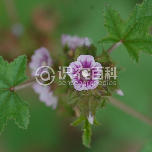 一年或多年生草本,被星狀柔毛。葉互生,掌狀5-7裂,近圓形,基部心形,裂片卵狀三角形,邊緣有鋸齒。花數(shù)朵簇生葉腋,淡粉色,萼5齒裂;花瓣5,三角狀卵形,雌蕊聯(lián)合成短柱狀,蒴果扁球形,生于宿萼內(nèi),由10-11心皮組成,熟后心脾彼此分離并于中軸脫離,形成分果。花期4-5月。果期7月。