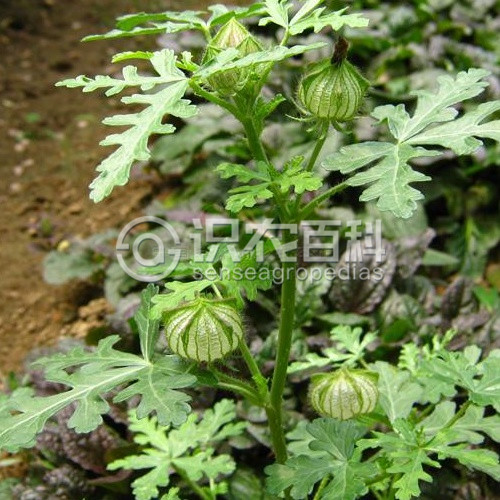 野西瓜苗(學名:Hibiscus trionum L. ),雙子葉植物綱,錦葵目,錦葵科,木槿屬一年生直立或平臥草本植物。