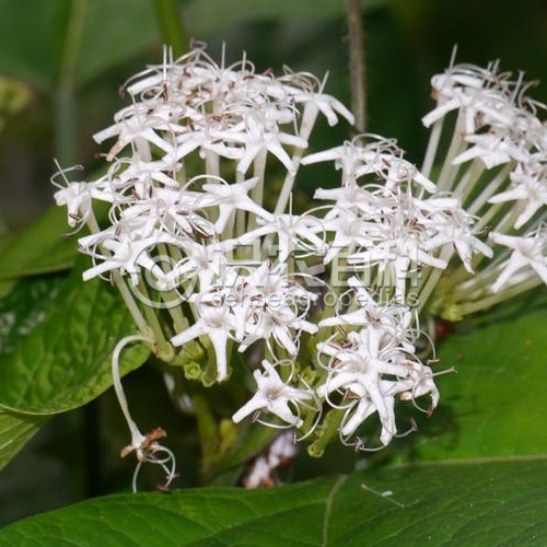 灌木或小喬木,高1.5-3米,少可達6米;小枝四棱形,較粗壯,植物體除葉片外都密被黃褐色微毛,老時脫落;髓疏松。葉片厚紙質,寬卵形或橢圓狀心形,長7-27厘米,寬6-21厘米,頂端漸尖或急尖,基部截形、寬楔形或心形,全緣或微呈波狀,葉面被疏短柔毛或近于無毛,背面沿脈被微柔毛,基部三出脈,脈腋有數個盤狀腺體;葉柄長2-20厘米。聚傘花序著生枝上部葉腋和頂端,通常4-6枝排列成傘房狀,花序梗長1.5-13厘米,較粗;苞片披針形,長約1.5厘米,早落;花萼較小,鐘狀,長3-4毫米,外面密被短柔毛和少數盤狀腺體,5淺裂,裂片三角形,長不到1毫米,萼管長1-3毫米;花冠白色,極少為紅色,頂端5裂,裂片長圓形,長3-6毫米,花冠管長1.2-2.5厘米,無毛;雄蕊長于花柱,均突出于花冠外。果近球形,徑約1厘米,藍綠色,干后黑色,分裂為3-4個分核,宿存花萼增大,紫紅色,如碟狀托于果底部。花果期8-12月。