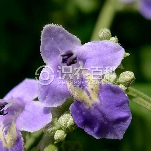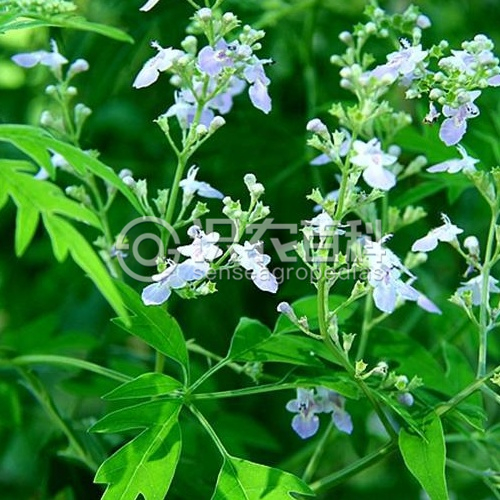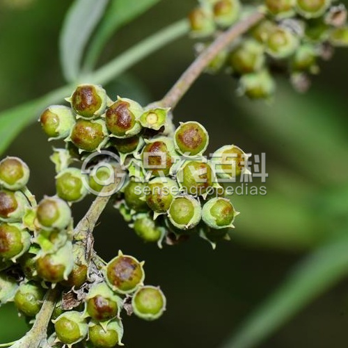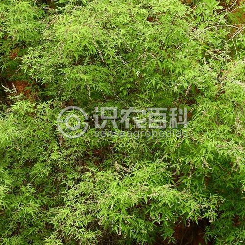 灌木或小喬木;小枝四棱形,密生灰白色絨毛。掌狀復葉,小葉5,少有3;小葉片長圓狀披針形至披針形,頂端漸尖,基部楔形,全緣或每邊有少數粗鋸齒,表面綠色,背面密生灰白色絨毛;中間小葉長4-13厘米,寬1-4厘米,兩側小葉依次遞小,若具5小葉時,中間3片小葉有柄,最外側的2片小葉無柄或近于無柄。聚傘花序排成圓錐花序式,頂生,長10-27厘米,花序梗密生灰白色絨毛;花萼鐘狀,頂端有5裂齒,外有灰白色絨毛;花冠淡紫色,外有微柔毛,頂端5裂,二唇形;雄蕊伸出花冠管外;子房近無毛。核果近球形,徑約2毫米;宿萼接近果實的長度。花期4-6月,果期7-10月。