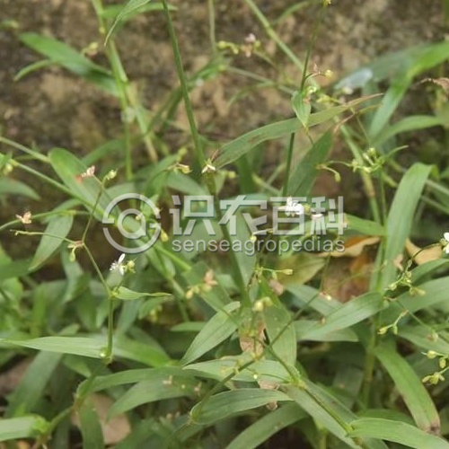 根須狀,纖細(xì),直徑不及0.3毫米,無(wú)毛或被長(zhǎng)絨毛。莖多條自基部發(fā)出,披散,下部節(jié)上生根,長(zhǎng)10-50厘米,分枝或否,無(wú)毛,主莖發(fā)育。葉幾乎全部莖生,有時(shí)有1-2枚條形長(zhǎng)達(dá)10厘米的基生葉,莖生葉葉鞘長(zhǎng)一般不及1厘米,通常全面被長(zhǎng)剛毛,但也有相當(dāng)一部分植株僅口部一側(cè)密生長(zhǎng)剛毛而別處無(wú)毛;葉片禾葉狀或披針形,頂端鈍或漸尖,兩面無(wú)毛或疏生剛毛,長(zhǎng)2.5-10厘米,寬5-10毫米。蝎尾狀聚傘花序數(shù)個(gè),排成頂生圓錐花序,或僅單個(gè);總苞片下部的葉狀,但較小,上部的很小,長(zhǎng)不及1厘米。聚傘花序有數(shù)朵密集排列的花,具纖細(xì)而長(zhǎng)達(dá)4厘米的總梗;苞片早落;花梗細(xì)而挺直,長(zhǎng)3-5毫米;萼片草質(zhì),卵狀橢圓形,淺舟狀,長(zhǎng)約3毫米;花瓣紫色,長(zhǎng)約3毫米;能育雄蕊2枚,不育雄蕊2-4枚,花絲下部有須毛。蒴果卵圓狀三棱形,長(zhǎng)3-4毫米。種子黃棕色,有深窩孔,或同時(shí)有淺窩孔和以胚蓋為中心呈輻射狀排列的白色瘤突。花果期(6)8-9(10)月。