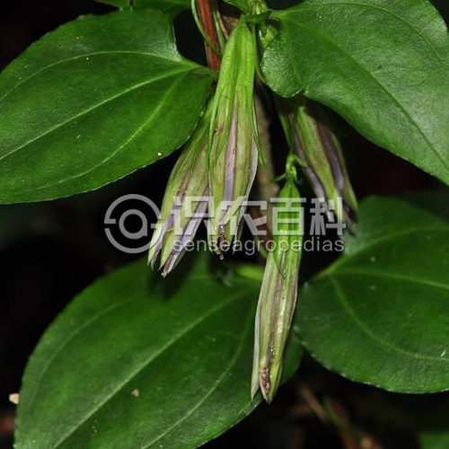 (1)2-6厘米,先端急尖或呈圓形,基部圓形,近無(wú)柄或具極短的葉柄,全緣,上面綠色,有白色或黃綠色斑紋或否,下面淡綠色或紫紅色;莖生葉通常卵狀披針形,少為卵形,向上部變小呈披針形,長(zhǎng)5-12厘米,寬2-5厘米,先端漸尖或呈尾狀,基部心形或近圓形,葉脈3條,全緣,葉柄扁平,長(zhǎng)4-10毫米。具多花,2-4朵呈聚傘花序,少單花、腋生;花梗短,通常不超過(guò)1厘米,具1-3對(duì)小苞片或否;花萼鐘形,萼筒長(zhǎng)9-13毫米,具狹翅或無(wú)翅,裂片線(xiàn)狀披針形,長(zhǎng)6-9毫米,通常短于萼筒或等長(zhǎng),彎缺截形;花冠藍(lán)紫色或淡紫色,褶色較淡或呈乳白色,鐘形,長(zhǎng)3.5-4.5厘米,裂片卵狀三角形,長(zhǎng)5-7毫米,寬4-5毫米,褶半圓形,長(zhǎng)1-2毫米,比裂片短約5毫米,寬約3毫米,先端淺波狀;雄蕊著生于冠筒下部,不整齊,花絲線(xiàn)形,長(zhǎng)1.3-1.9厘米,花藥卵形,長(zhǎng)約1.5毫米;子房長(zhǎng)橢圓形,兩端漸狹,長(zhǎng)1.3-1.7厘米,柄長(zhǎng)8-12毫米,柄基部具長(zhǎng)約1.5毫米的環(huán)狀花盤(pán),花柱線(xiàn)形,長(zhǎng)8-11毫米,柱頭線(xiàn)形,2裂,反卷。蒴果內(nèi)藏或先端外露,淡褐色,橢圓形,扁平,長(zhǎng)2-2.5厘米,寬0.7-0.8厘米,柄長(zhǎng)1-1.5厘米,花柱宿存;種子淡褐色,近圓形,長(zhǎng)寬約相等,直徑約2毫米,具盤(pán)狀雙翅。花果期10-12月。