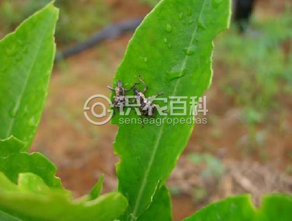 象甲為鞘翅目象甲科昆蟲簡稱,也稱象鼻蟲,柑橘上為害較大的有灰象甲、大綠象甲和小綠象甲。象甲幼蟲能鉆入根、莖、葉中蛀食,尤其喜食嫩葉、春梢、幼果,造成果子表面凹陷缺刻,甚至可咬斷嫩梢和幼果果柄,咬食出傷口的幼果極易遭受病害侵染。