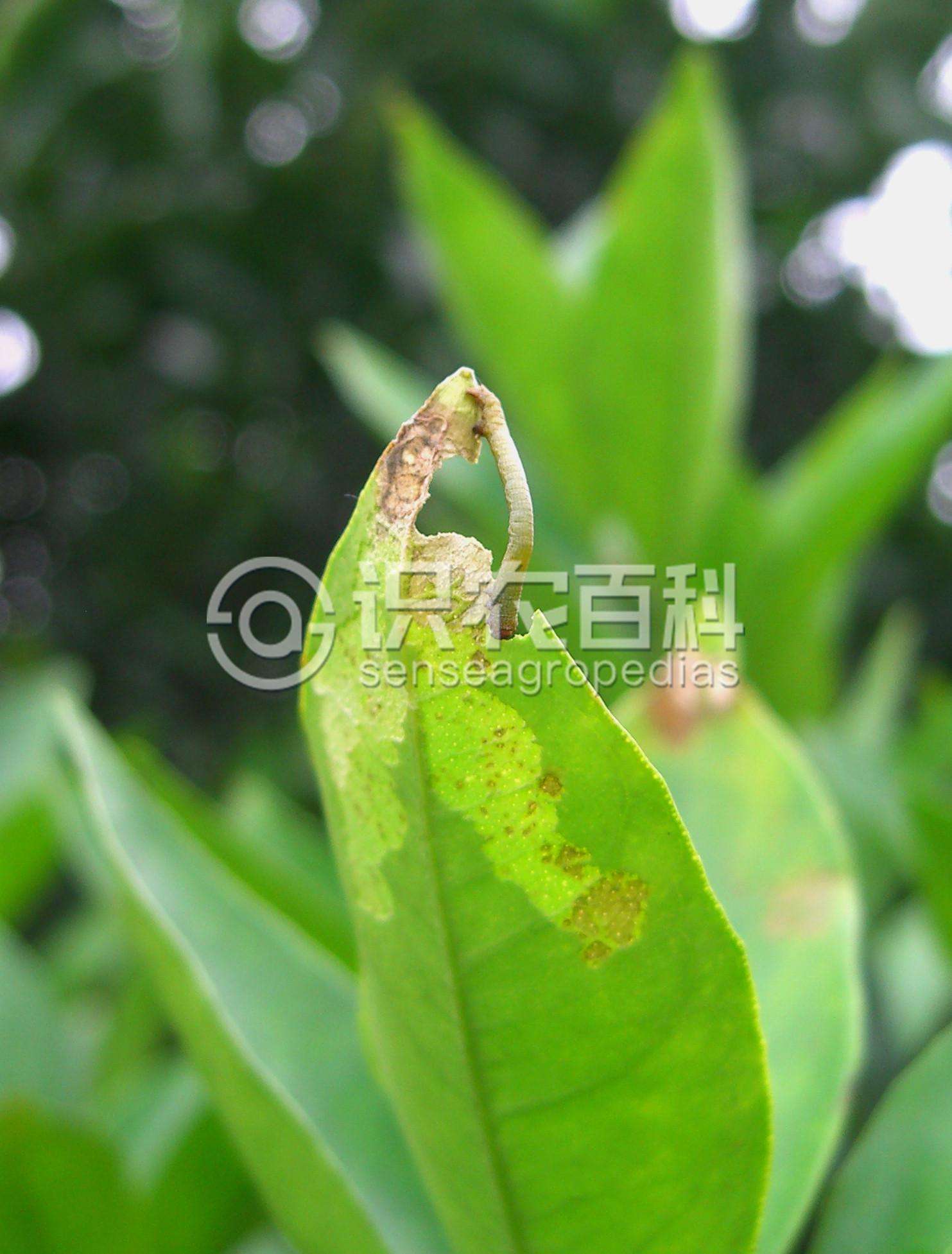 以幼蟲(chóng)嚙食寄主的葉片、幼果,致葉片殘缺,幼果脫落。樹(shù)勢(shì)下降,產(chǎn)量減少。受害嚴(yán)重時(shí),葉尖赤褐,干枯,如火燒狀。高齡幼蟲(chóng),新葉、老葉均嚙食,只留一些主脈,嚴(yán)重 時(shí),全樹(shù)葉片幾無(wú)保留,狀如掃帚。