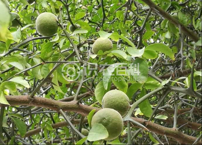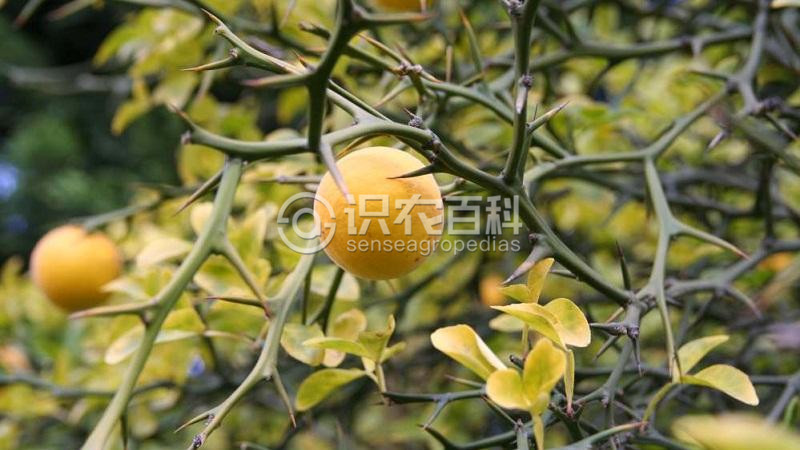 落葉性灌木或小喬木。樹姿開張,枝條硬刺多且長。葉為三出復葉。一年多次開花,花小,完全花。果實圓球形或扁圓形,暗橙黃色,大小為3.8~4.0cm×3.6~4.2cm,果頂微突,有印圈,果面密被茸毛,較粗糙,皮包著緊,難剝離。味酸苦澀不堪食用。種子20~35粒/果,9~10月成熟。該品種在國內有大葉大花枳、小葉小花枳等類型,以大葉大花型比較優良。枳冬季落葉,有一定的休眠期。是我國多數柑橘產區的柑橘砧木,但南亞熱帶地區不宜作蕉柑、粵英甜橘、新會甜橙等的砧木。