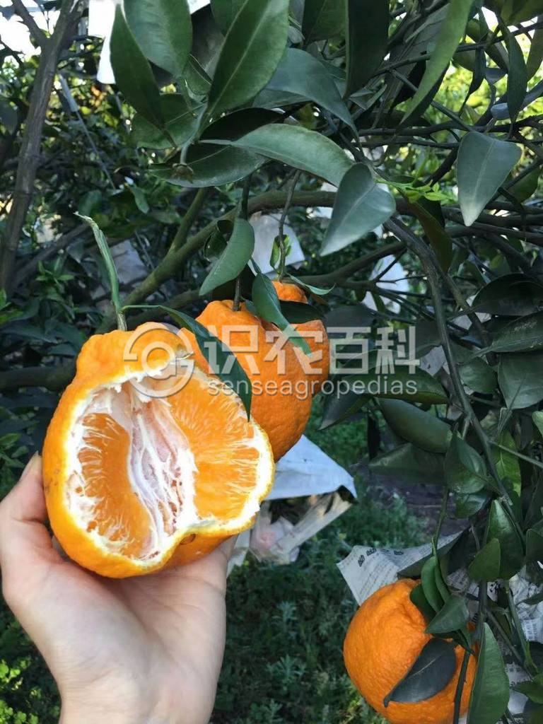 果實(shí)大,平均果重200克,最大400克以上。果實(shí)倒卵形,多有突起短頸;果皮黃橙色,10月上旬開始著色,12月上旬完全著色;果皮黃橙色,果面稍粗,易剝皮,果汁糖度在13%以上,最高達(dá)17%,味極甜;次年2~3月成熟,風(fēng)味極好。