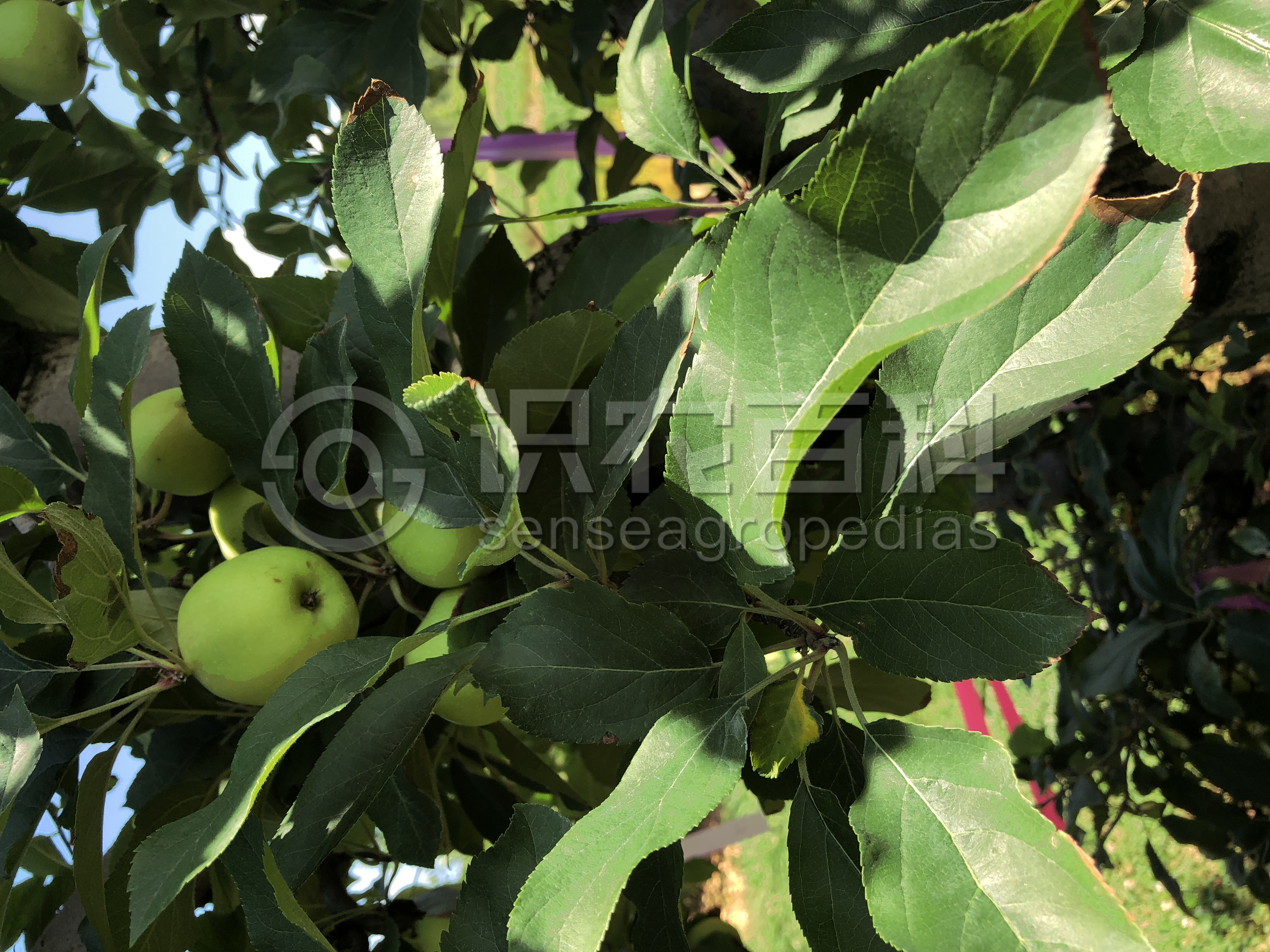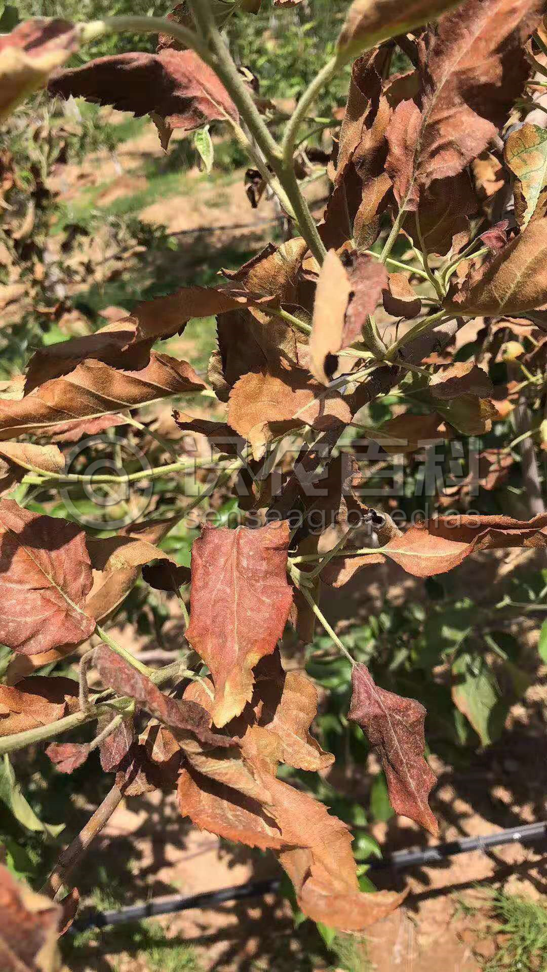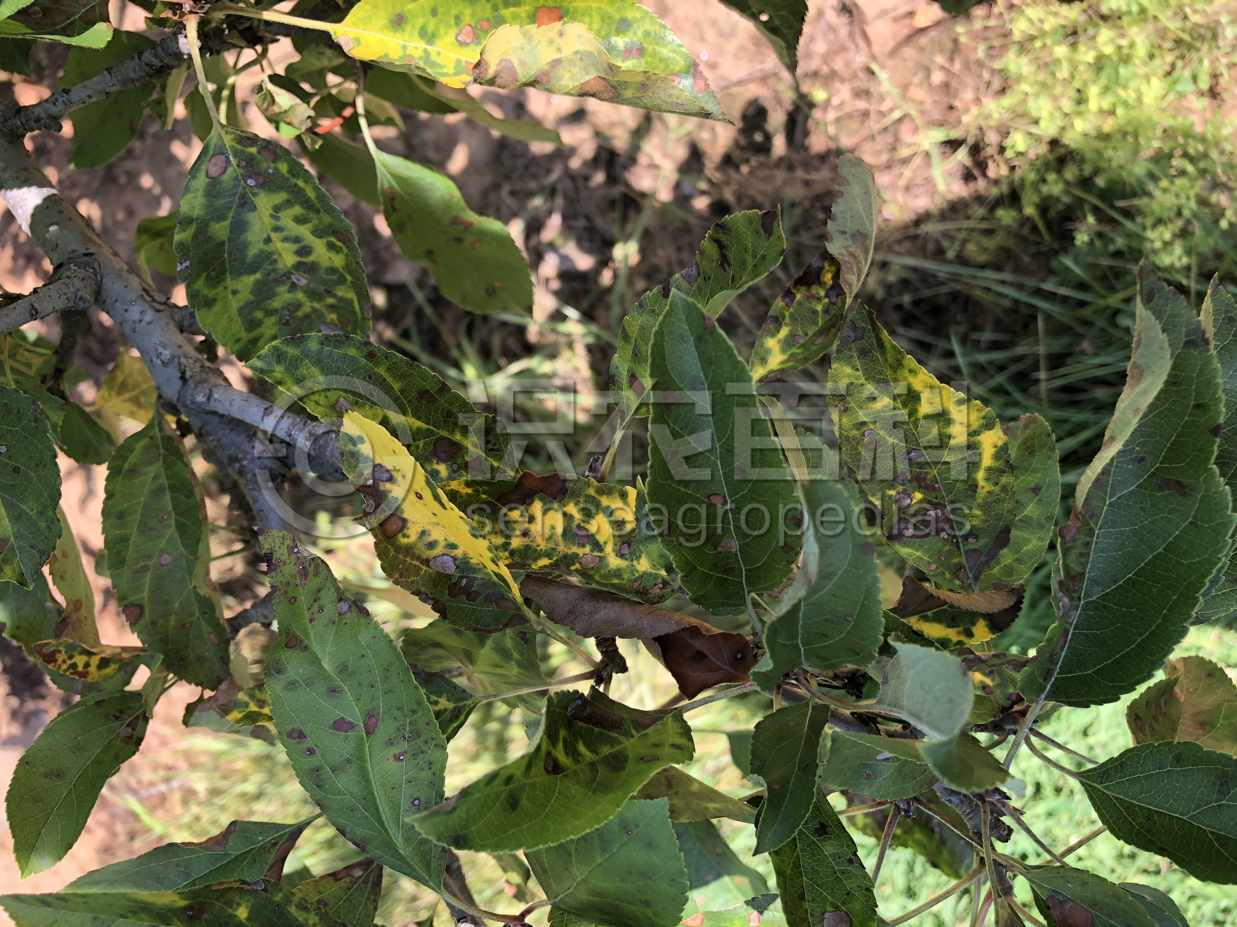 炭疽葉枯病是近5年引起蘋果早期大量落葉的主要病害,特別是在夏季多雨的年份發生嚴重。該病害發病、流行速度快,幾天內即可導致全樹落葉和果實腐爛,造成第2次開花,減產非常嚴重。蘋果炭疽落葉病主要為害葉片,發病初期為黑色不規則壞死病斑,病斑邊緣模糊。在高溫高濕條件下,病斑擴展迅速,1~2天內可蔓延至整張葉片,使整張葉片變黑壞死。發病葉片失水后呈焦枯狀,隨后脫落。該病害還為害果實,在果面形成大小不一的褐色斑,引起落果。嘎啦、金冠、秦冠和喬納金等品種極易感病,富士、紅星等品種高度抗病。