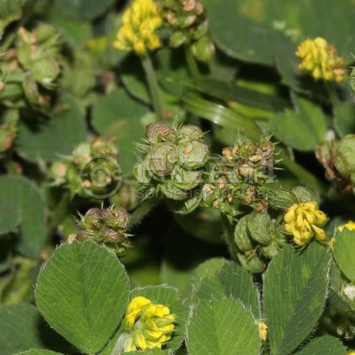 高15-60厘米,全株被柔毛或有腺毛。主根淺,須根發達。莖平臥或上升,多分枝,葉茂盛。羽狀三出復葉;托葉卵狀披針形,長可達1厘米,先端漸尖,基部圓或戟狀,常齒裂;下部葉柄較長,長1-2厘米,上部葉柄比小葉短;小葉倒卵形、闊倒卵形或倒心形,長5-20毫米,寬4-16毫米,紙質,先端多少截平或微凹,具細尖,基部楔形,邊緣在上半部具不明顯尖齒,兩面均被毛,側脈近10對,平行達葉邊,幾不分叉,上下均平坦;頂生小葉較大,小葉柄長2-6毫米,側生小葉柄甚短?;ㄐ蛐☆^狀,具花10-20朵;總花梗細,挺直,比葉長,密被貼伏柔毛;苞片刺毛狀,甚?。换ㄩL2-2.2毫米;花梗短,長不到1毫米;萼鐘形,長約2毫米,密被毛,萼齒線狀披針形,稍不等長,比萼筒略長或等長;花冠黃色,旗瓣近圓形,頂端微凹,冀瓣和龍骨瓣近等長,均比旗瓣短:子房闊卵形,被毛,花柱彎曲,胚珠1粒。莢果腎形,長3毫米,寬2毫米,表面具同心弧形脈紋,被稀疏毛,熟時變黑;有種子1粒。種子卵形,褐色,平滑?;ㄆ?-9月,果期8-10月。