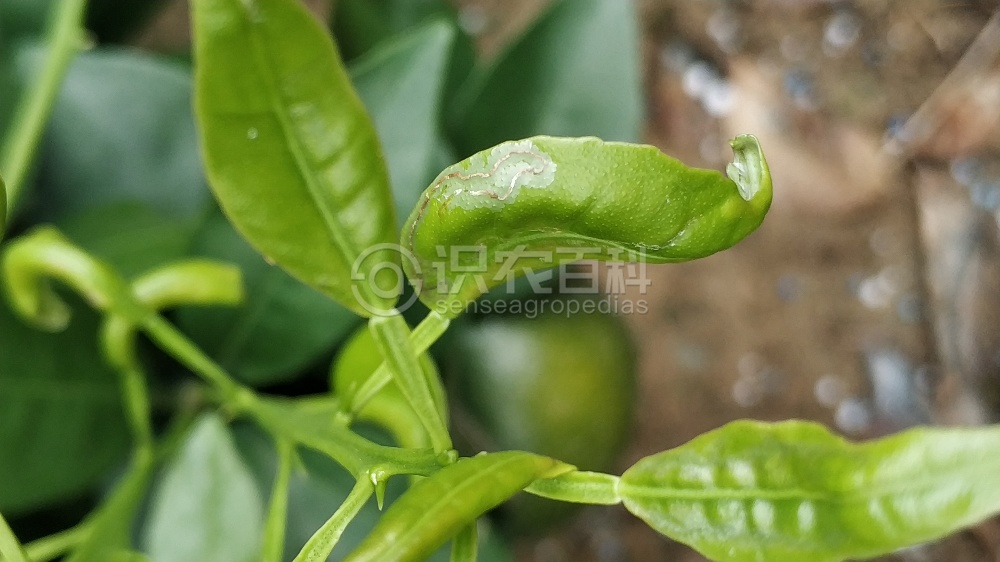 以幼蟲危害嫩葉、嫩枝、潛入表皮下蛀食,形成銀白色彎曲隧道,使葉卷縮硬化,易于脫落;卷葉常成為紅蜘蛛、黃蜘蛛、卷葉蛾類等多種害蟲聚集和越冬的場所,幼蟲危害的傷口有利于柑橘潰瘍病的入侵。