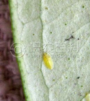 卵散產在葉片正背兩面,若蟲孵出后先行爬行,后固定在葉片主脈兩側吸取汁液。