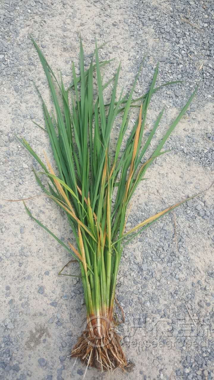病株基部葉片葉尖先現黃化,繼而向下或從葉緣向中脈擴展,終致全葉變橙黃色。苗期及分蘗后發病易枯死。少數不枯死的則表現抽穗遲,穗小扭曲,空粒多,千粒重下降,或呈包頸穗。
