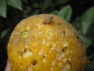 取食柑橘的莖、葉、果實,造成枝條皮層缺損,葉片缺刻和孔洞,葉片枯黃。果實被害,輕者果皮呈灰白色疤痕,嚴重時可鉆食果肉,導致果實脫落。同時分泌黏液,污染果面。