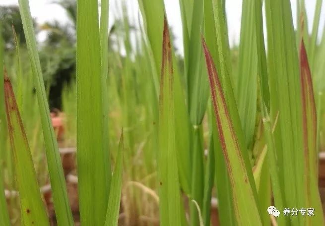 缺磷常在生育前期形成“僵苗”,表現為生長緩慢,不分蘗或延遲分蘗,秧苗細弱不發根。葉色暗綠或灰綠帶紫色,葉形狹長,葉片小,葉呈環狀卷曲。老根變黃,新根少而纖細,嚴重時變黑腐爛。成熟期不一致,穗小粒少,千粒重低,空殼率高。還易引起胡麻葉斑病;抽穗、成熟延遲,減產嚴重。