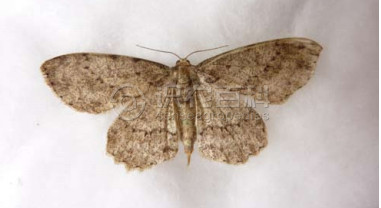成蟲體長14.0-19.0毫米,翅展37-50毫米;雄蛾觸角微櫛齒狀,雌蛾觸角絲狀;體灰白色,翅灰白色,密布許多小褐點;前翅內橫線褐色,波狀,中線不明顯,外橫線明顯波狀,中部位于中室端外側有一深褐色近圓形大斑,亞緣線近頂角處有明顯褐斑,各橫線于翅前緣處擴大成斑,翅外緣有小黑點列。卵橢圓形,青綠色。幼蟲老熟時體長28-35毫米,體色變化大,有茶褐、灰褐、青褐等色。體上有各種形狀的灰黑色條紋和斑塊。中胸至腹部第八節(jié)兩側各有1條斷續(xù)的褐色側線。蛹體長14-16毫米,紡錘形,紅褐色,腹末端具2臀棘。