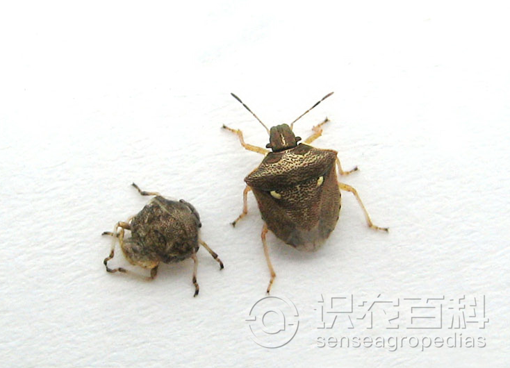 成、若蟲吸食寄主莖稈、葉穗部汁液,致植株生長發育受阻,籽粒不飽滿。