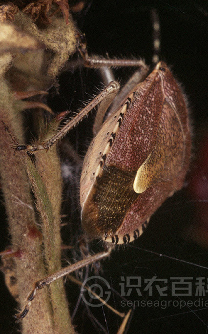 成蟲體長8-13.5mm,寬約6mm,橢圓形,黃褐或紫色,密被白絨毛和黑色小刻點;觸角黑白相間;喙細(xì)長,緊貼于頭部腹面。小盾片末端鈍而光滑,黃白色。