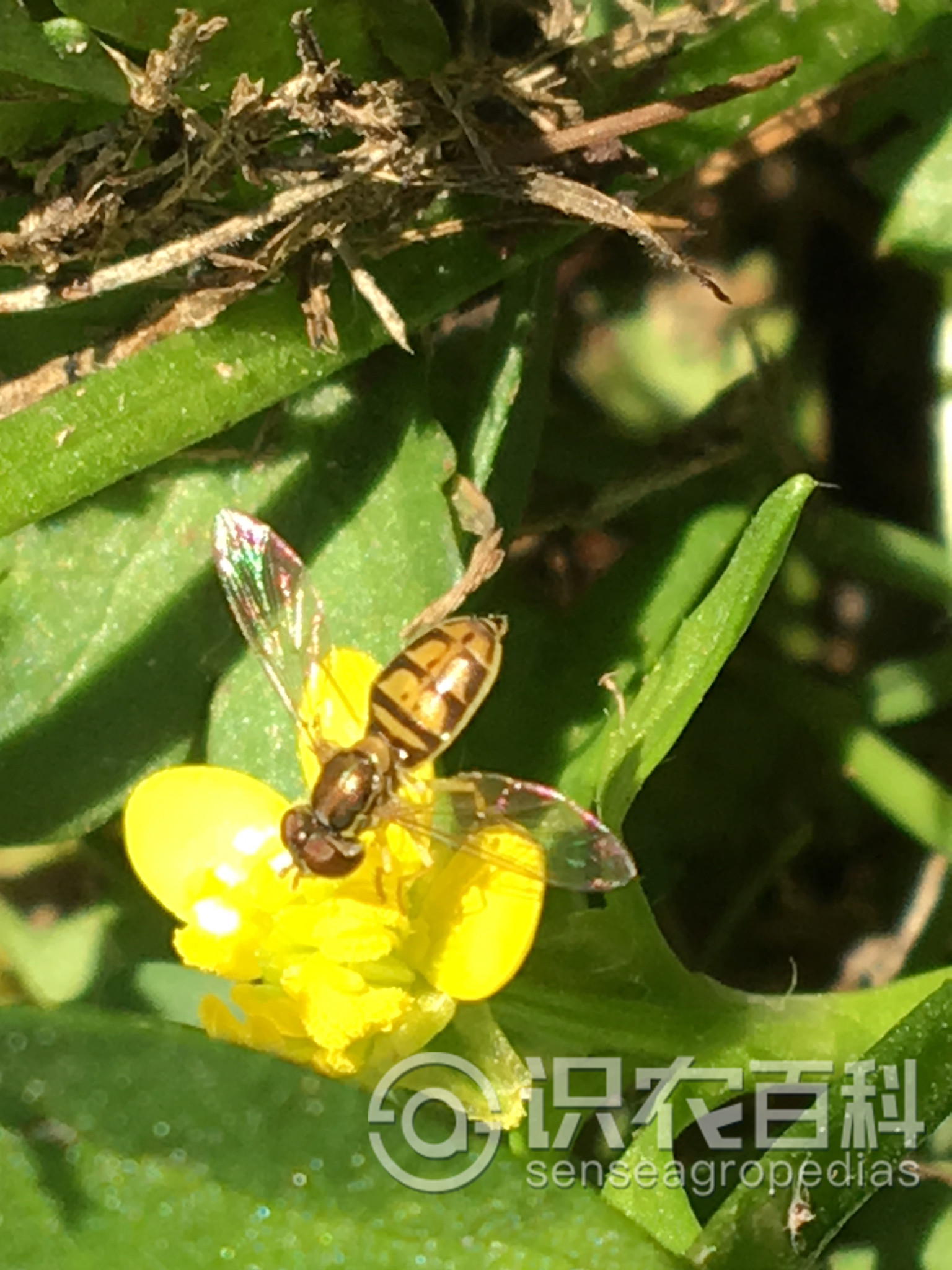 食蚜蠅成蟲早春出現,春夏季盛發,性喜陽光,常飛舞花間草叢或芳香植物上,取食花粉、花蜜,并傳播花粉,時或吸取樹汁。成蟲飛翔力強,常翱翔空中,或振動雙翅在空中停留不動,或突然作直線高速飛行而后盤旋徘徊。