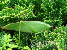成蟲體長3540毫米,雄較雌略小,雌產卵器長2527毫米;全體綠色,帶暗褐色斑紋;復眼橢圓形,褐色;觸角絲狀,細長,超過腹端;前翅雌蟲伸達腹端,雄蟲超出腹端;翅脈暗褐色至黑色,翅上并有暗褐色至黑色斑紋;雄前翅基部有發音器,后翅較發達,不善飛行。若蟲觸角特別細長,與成蟲相似,體較小,無翅,成長過程中漸長出翅芽。