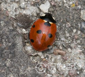 七星瓢蟲體長5.2-7.0毫米,寬4.0-5.6毫米。蟲體卵圓形,背面光滑并拱超呈半球狀。剛羽化的成蟲柔軟,嫩黃色,2-3小時后,整個體軀和鞘翅變硬,顏色由黃變紅,同時鞘翅上出現(xiàn)7個黑色斑點。