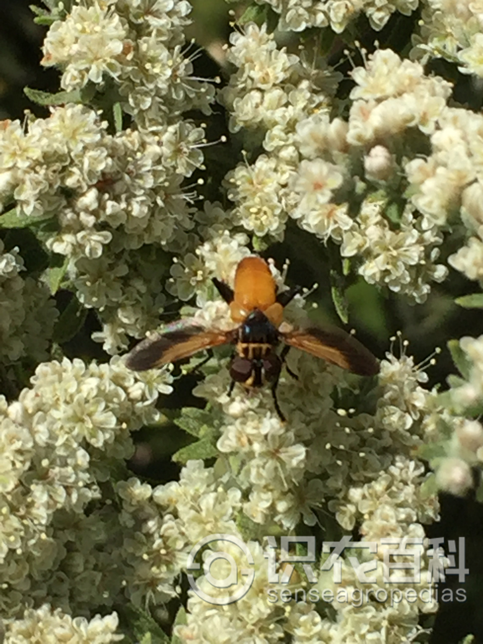寄蠅科,隸屬于雙翅目有瓣蠅類,世界已知約10000種幼蟲專門寄在其他昆蟲體內,因而得名。成蟲具舐吸式口器,除舐吸植物的花蜜外,蚜蟲、介殼蟲或植物莖、葉所分泌的含糖物質都是它們喜好的食物。