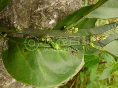 世代重疊,以老熟幼蟲在土壤淺層中越夏、越冬。產卵于未張開的芽蕾上,初孵幼蟲鉆入嫩芽為害,被害芽腫大呈蟲癭狀,小葉卷曲,或幼芽縮成小癭瘤,或小葉柄膨大呈瘤狀,被害部位色較淡或顯白黃色。4月以前,從發現被害后約10天,橘芽即干枯、脫落。在被害草干枯前,幼蟲彈跳入土筑室化蛹。4月至5月初,由于溫度增高,被害芽多發霉腐爛。幼蟲多在12厘米的土表活動和化蛹。5月以后,幼蟲即在表土中結繭,直至12月底或次年1月上旬才化蛹,并羽化為成蟲。