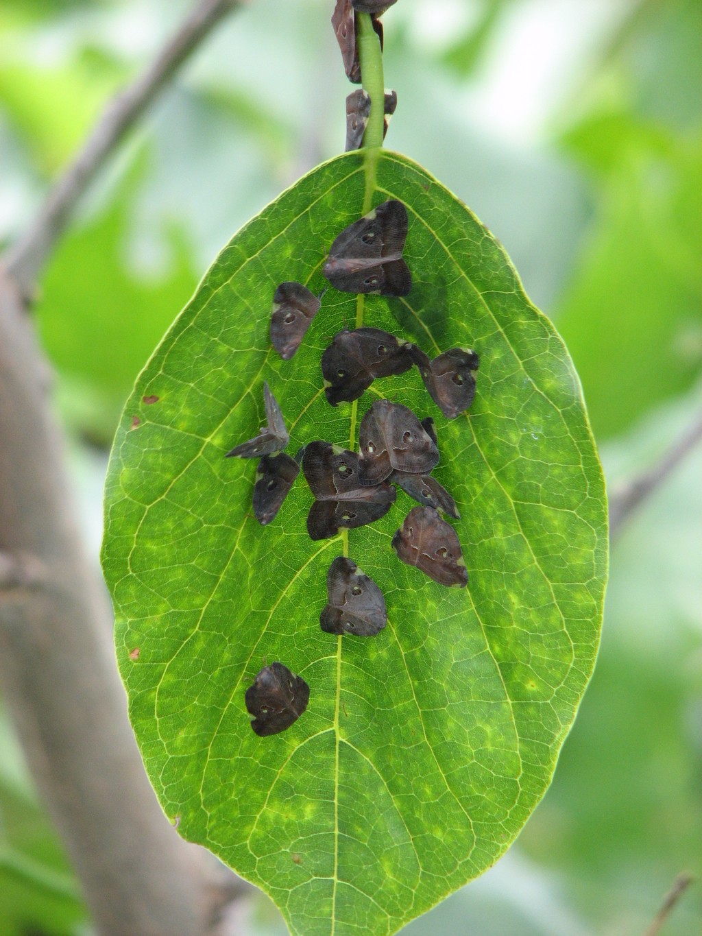 成蟲及若蟲常常在嫩枝、嫩芽、葉背上刺吸汁液。1、2齡若蟲有群集性在葉片背面為害,3齡若蟲分散到嫩枝上為害,若蟲在為害處分泌蜜露,誘發(fā)煤污病,影響光合作用,削弱樹勢。成蟲產(chǎn)卵于當(dāng)年生枝條、葉背主脈內(nèi),影響枝條及葉片生長,一年生枝條產(chǎn)卵處,8、9月份出現(xiàn)流膠現(xiàn)象,嚴(yán)重者產(chǎn)卵部以上枝條枯死,造成枯梢。