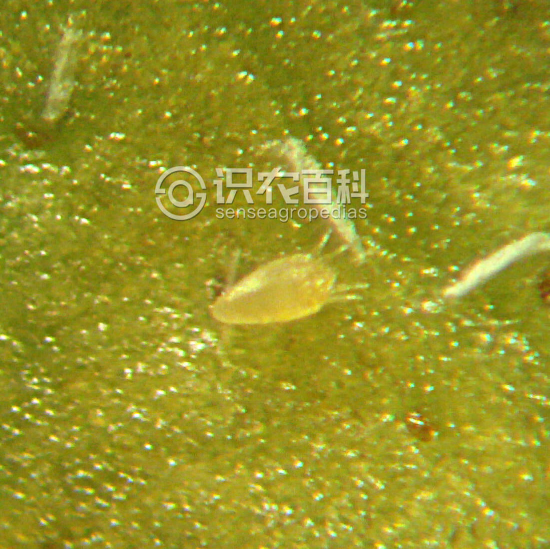 以成、若螨吸食植株葉片、花穗及果實組織汁液。造成果實表面凹凸不平,葉片變黃,嚴重情況下葉片焦枯脫落。
