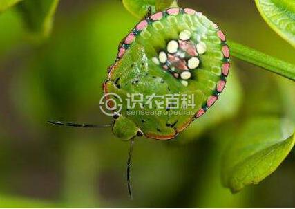 半翅目昆蟲,體小至中型體壁堅(jiān)硬而體略扁平,刺吸式口器具分節(jié)的喙,生于頭的前端,不用時(shí)貼放在頭胸的腹面。觸角一般4~5節(jié)。復(fù)眼顯著,單眼有或無。前胸背板發(fā)達(dá),中胸有發(fā)達(dá)的小盾片。前翅基半部革質(zhì)或角質(zhì),稱為半鞘翅,一般分為革區(qū)、爪區(qū)和腹區(qū)三部分,有的種類有楔區(qū)。很多種類胸部腹面常有臭腺,可散發(fā)惡臭。