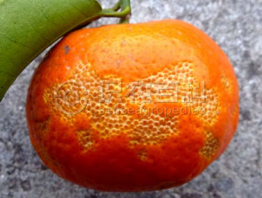 油斑病是由于油胞破裂后橘皮油外滲,侵蝕果皮細(xì)胞而引起的一種生理性病害。如在采前日夜溫差大和露水重;果實(shí)近成熟期受到機(jī)械損傷或受紅頭葉蟬或小綠葉蟬為害;果實(shí)生長(zhǎng)后期使用濃度不當(dāng)?shù)膲A性農(nóng)藥,如松堿合劑、或石硫合劑或膠體硫等農(nóng)藥;以及貯藏期溫、濕度和氣體成分等因素不適宜均可引起橘皮油外滲而誘發(fā)油斑病。